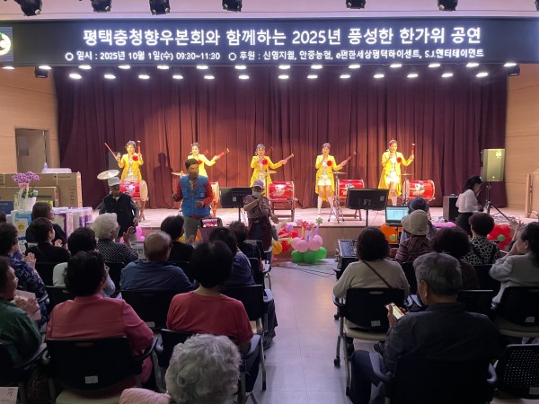 이번 행사는 평택충청향우본회의 공연과 평택도시공사의 특식 지원으로 마련되었으며, 400여 명의 어르신들이 참석해 따뜻한 정을 나누고 소통하며 즐거운 시간을 보냈습니다.